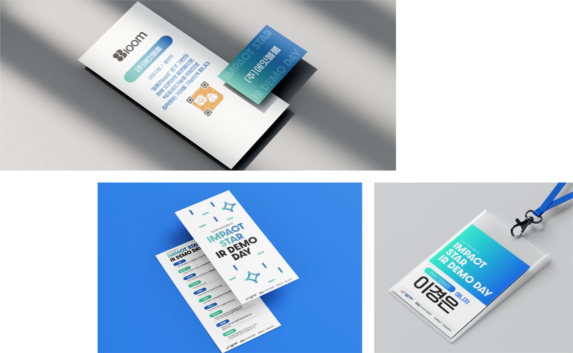 "I"와 "R"을 활용하여 별을 형상화함으로써 임팩트 스타 IR 데모데이라는 행사 타이틀을 상징적으로 표현하였습니다.