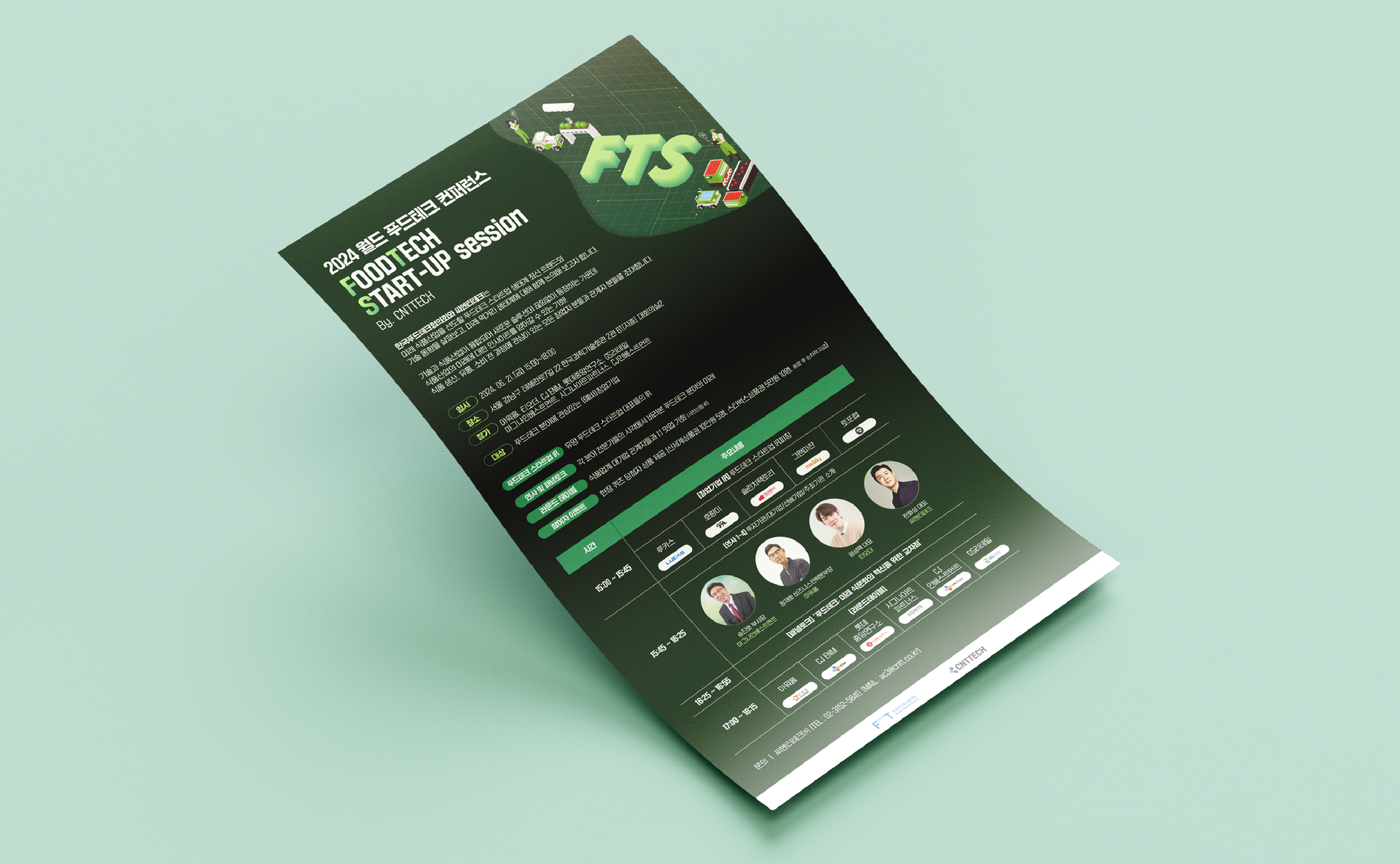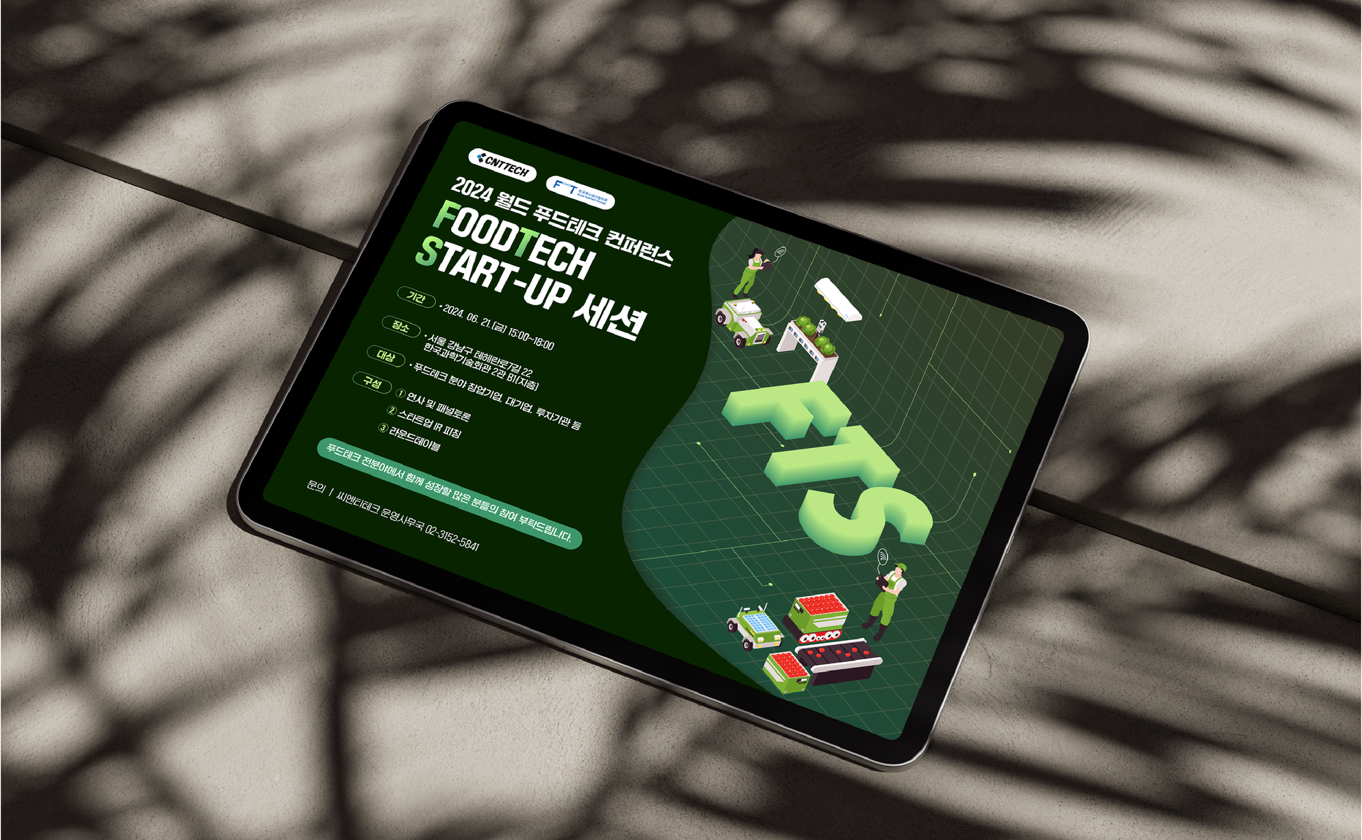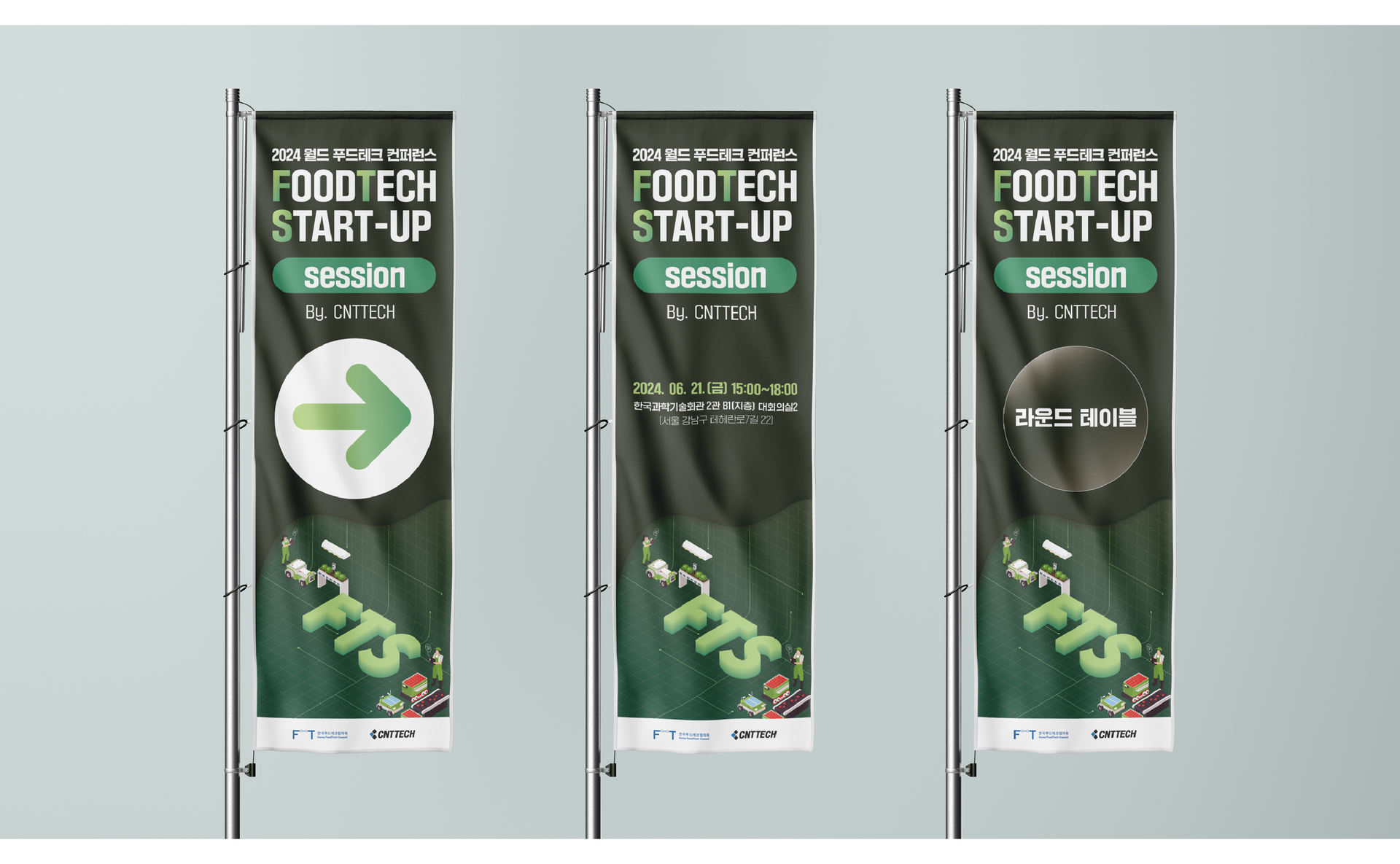 푸드테크 생태계의 미래 기술과 창의력이 조화를 이루는 무드를 단순하지만 세밀하게 표현공간의 입체감과 다층적인 형태를 통해 참여자 간의 소통과 네트워킹 기회의 느낌을 전달