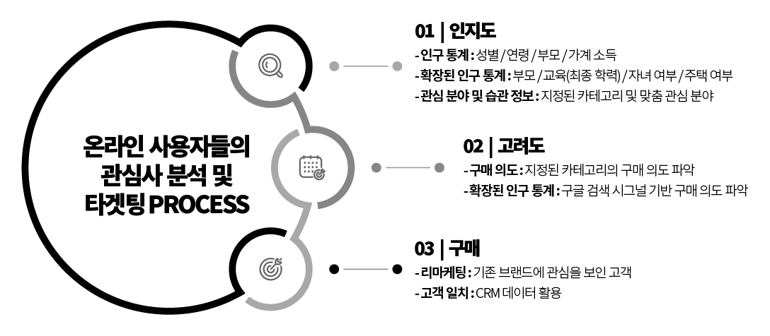 온라인 광고는 소비자의 행동 패턴을 분석하여 성별, 연령, 지역에 따른 빅데이터 기반의 타겟팅을 통해 맞춤 광고를 제공합니다.