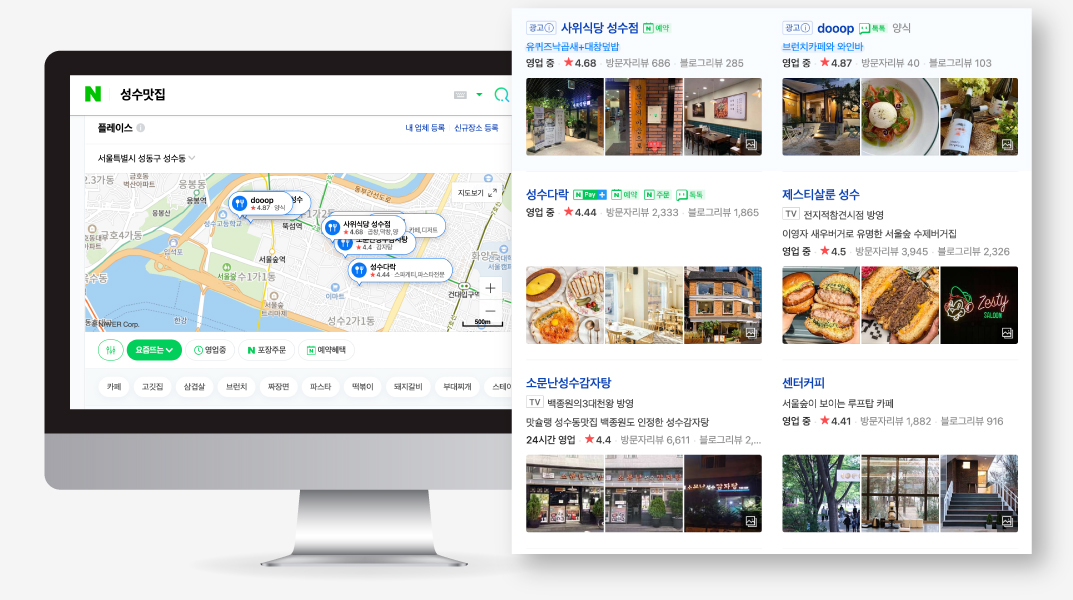 지역 상권을 위한 필수 요소로, 해당 지역 내에 지역과 업종을 검색하였을 경우, 네이버 검색창에 해당 업종과 위치가 노출됨으로써 고객 유입을 늘릴 수 있는 마케팅 상품입니다.
