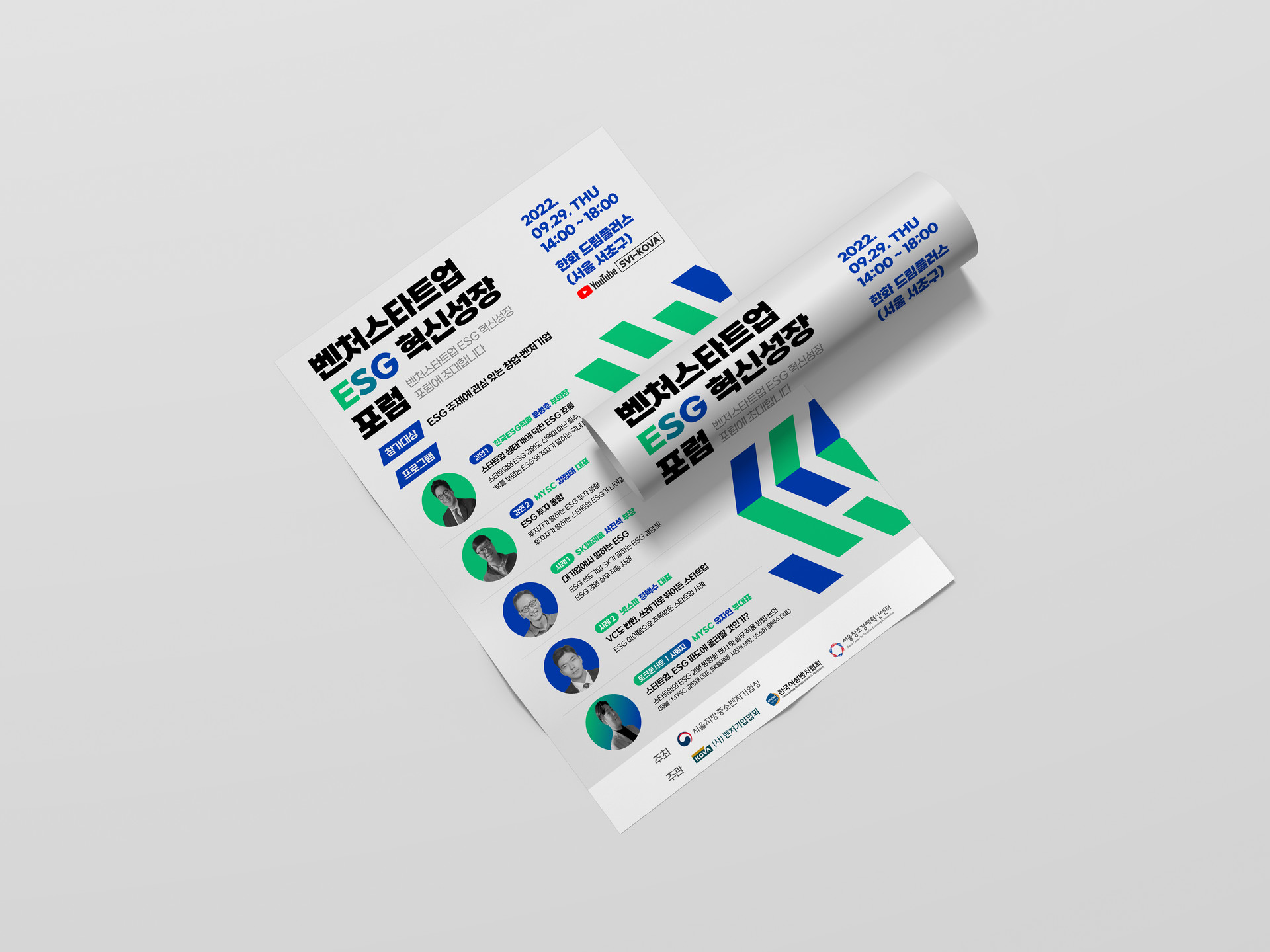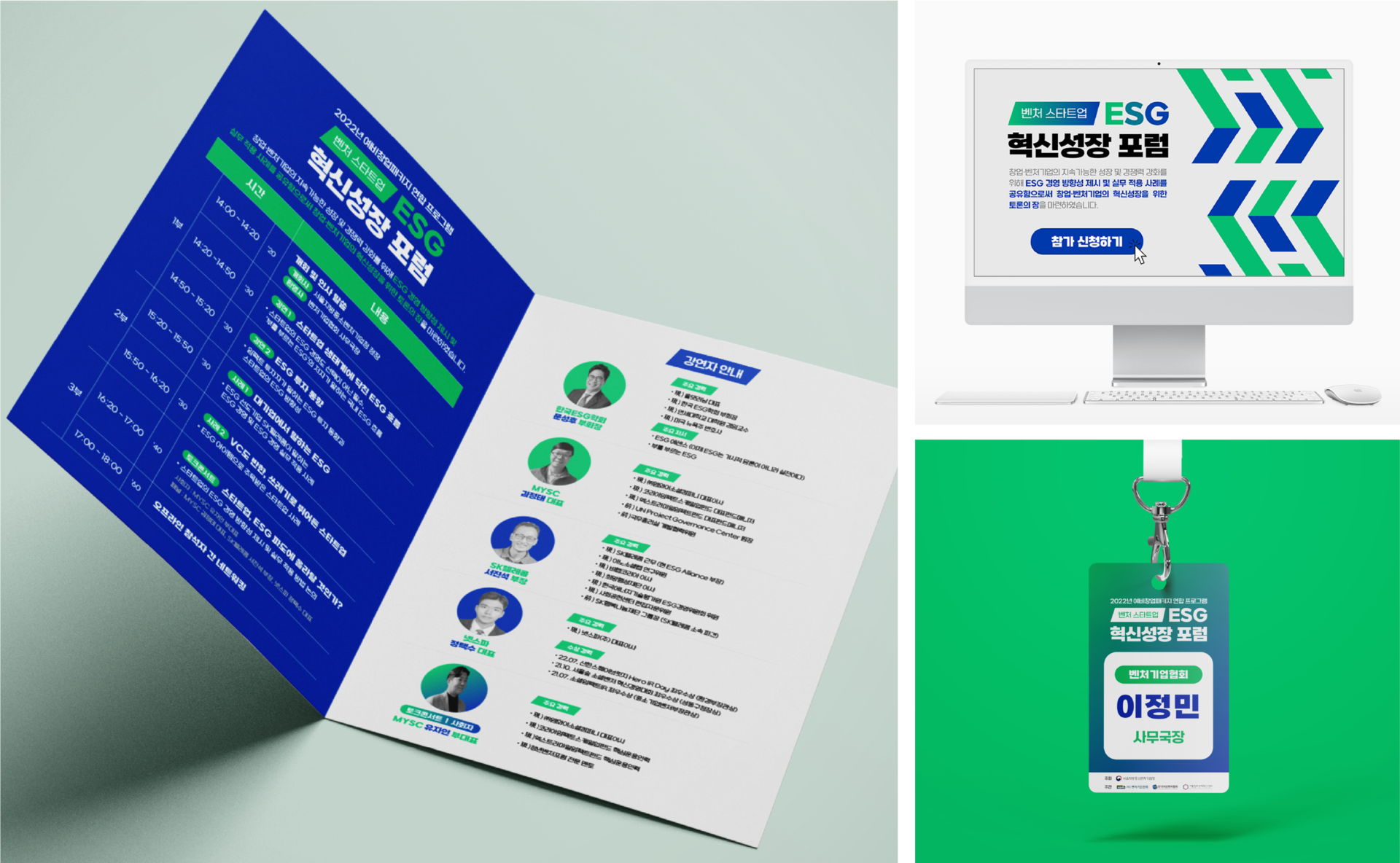 메인 컬러로 초록과 파랑을 선택하여 ESG의 의미를 담아내었으며,