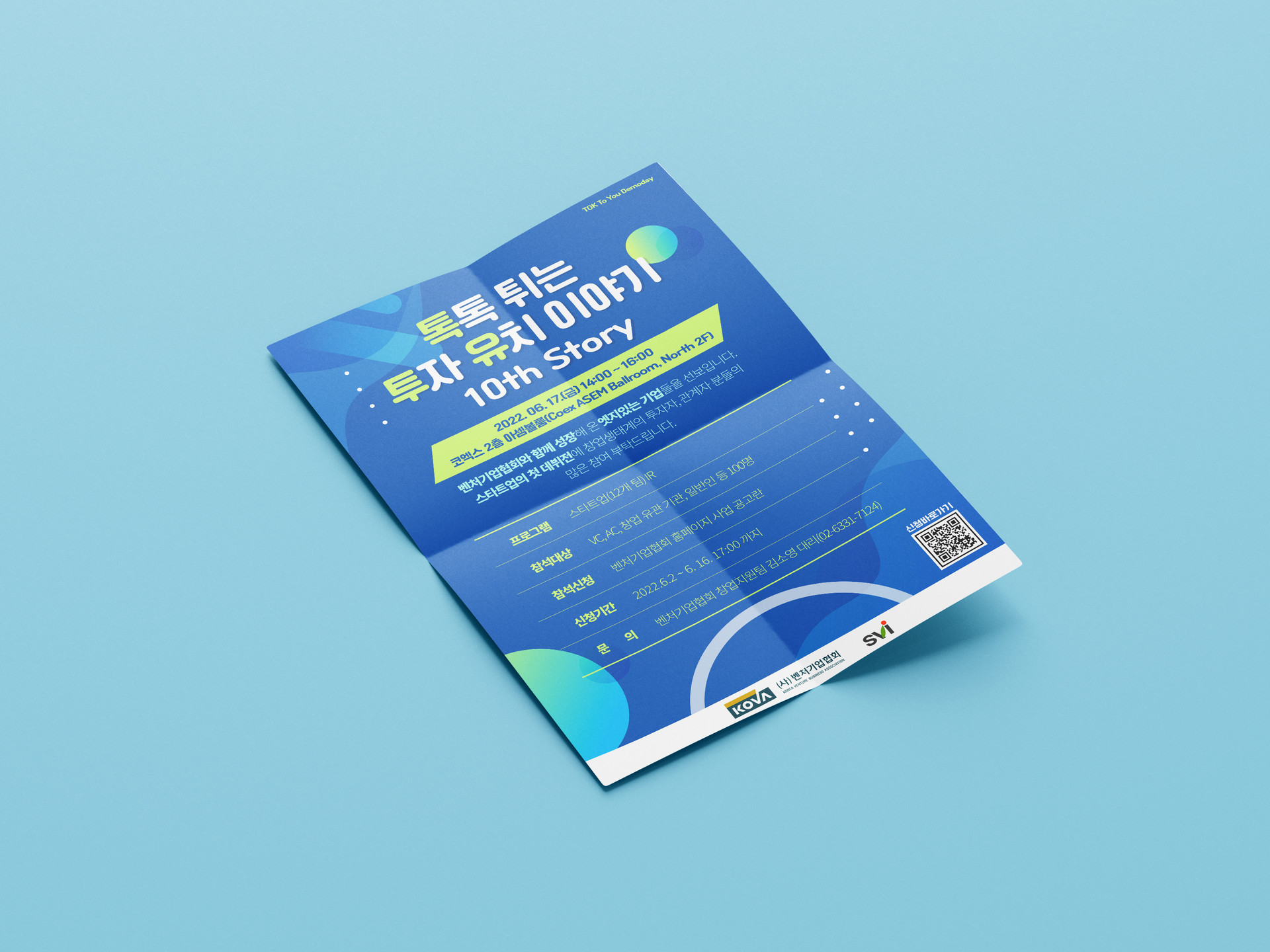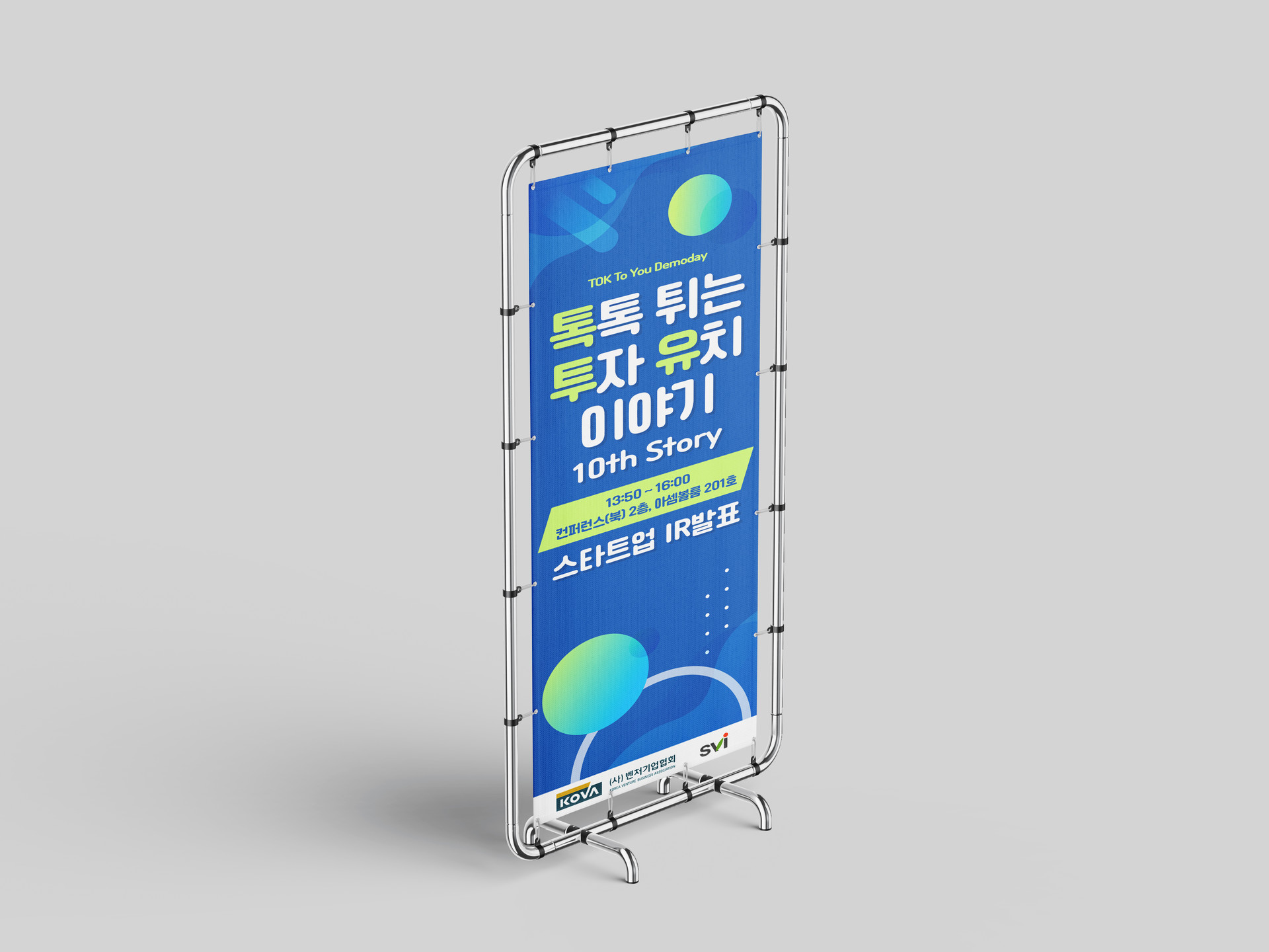 스타트업 IR이 주요 프로그램인 점에 집중하여 성장의 의미를 담고 있는 밝은 연두색과기업의 신뢰도를 상징하는 푸른색을 같이 사용해 스타트업의 첫 데뷔전을 함축적으로 표현하였습니다.